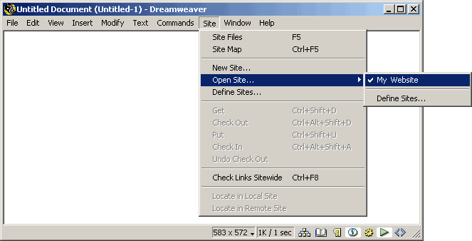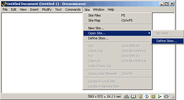 1. To setup up Macromedia Dreamweaver to use with your Custom Computer Technology Pty Ltd account, start Dreamweaver and click on