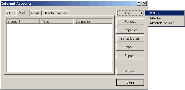 Please note: If you have already setup another application such as Eudora or Netscape you can import the mail settings from another client by going to