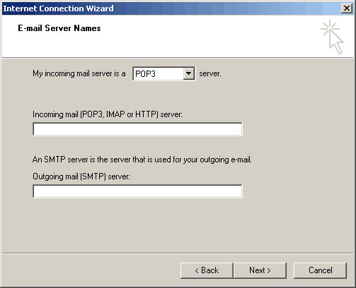 mail.eplaza.com.au in the incoming mail server field. Enter your ISP's smtp server in the outgoing mail server field and click next.