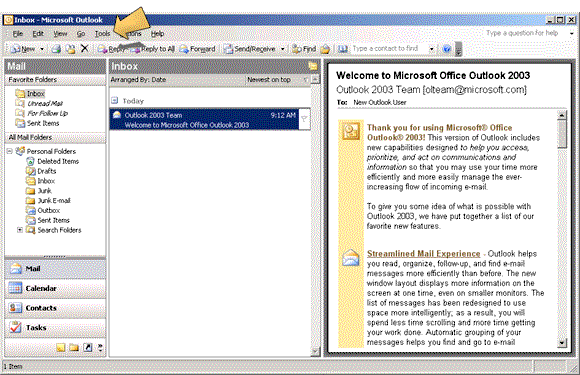 1. Open Outlook 2003 and click on the 'Tools' drop down menu.