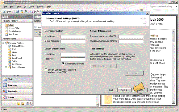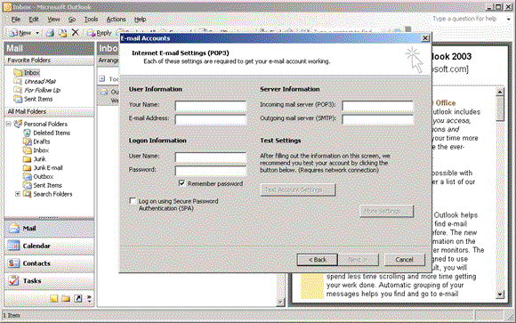 Outgoing mail server (SMTP) - Your ISP's smtp server